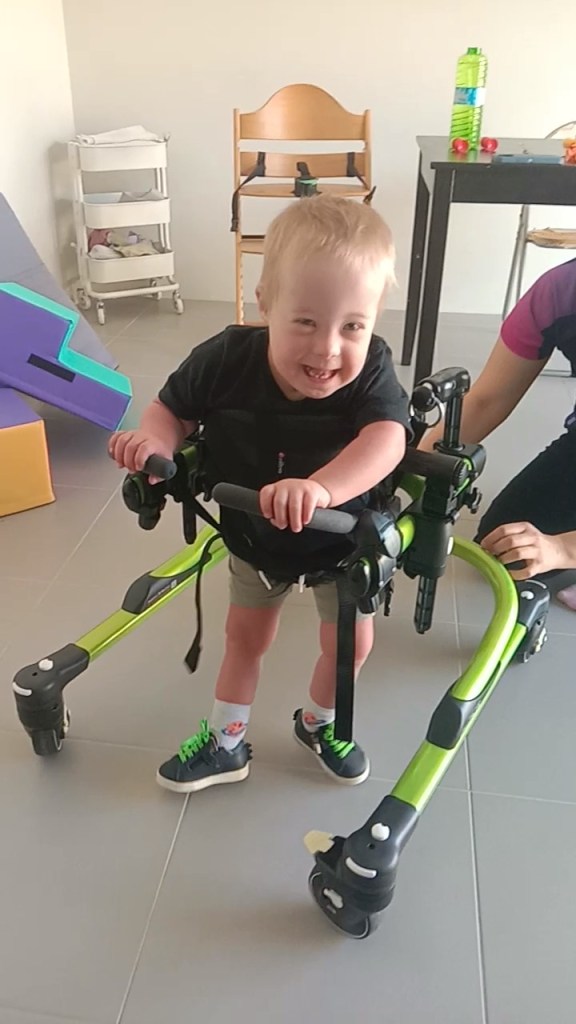 Have you experienced the delight of receiving something long-awaited? Aloysius has been working hard on standing and stepping, and we have waited a number of months for a specialised walker to arrive to help him get on the move. This week, the wait was over! What a joy it was to receive something that was made just for him, and to see his delight as he took steps around the house! We are so grateful for the supports we receive, and for Aloysius’ amazing Physiotherapist.